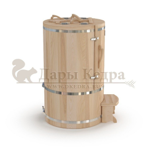 Круглая фитобочка из кедра - это мини парная, которую можно использовать не только в спа-салонах, но и дома. Такая модель наиболее компактна и мобильна. Толщина стенок составляет 40-45 мм, что позволяет увеличить срок службы изделия. Фитобочка оборудована откидными створками, дверцей и отверстием для головы. Во время парения человек сидит внутри кедровой бочки, а голова находится снаружи. Благодаря этому исключается возможность перегрева. Подлокотники из кедра, встроенные ручки на створках и двери делают эксплуатацию более удобной.
