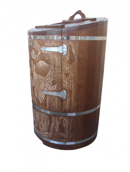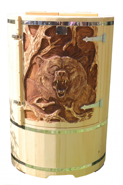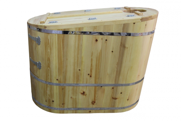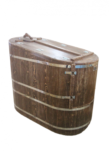 Круглая фитобочка из кедра - это мини парная, которую можно использовать не только в спа-салонах, но и дома. Такая модель наиболее компактна и мобильна. Толщина стенок составляет 40-45 мм, что позволяет увеличить срок службы изделия. Фитобочка оборудована откидными створками, дверцей и отверстием для головы. Верхний скос изделия делает положение головы более комфортным и улучшает обзор. Во время парения человек сидит внутри кедровой бочки, а голова находится снаружи. Благодаря этому исключается возможность перегрева. Подлокотники из кедра, встроенные ручки на створках и двери делают эксплуатацию более удобной.