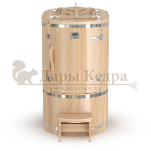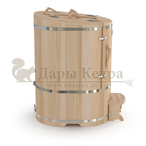 Овальная фитобочка из кедра - это мини парная, которую можно использовать не только в спа-салонах, но и дома. Овальная модель более просторна и удобна в использовании. Толщина стенок составляет 40-45 мм, что позволяет увеличить срок службы изделия. Верхний скос делает положение головы более комфортным и улучшает обзор. Она оборудована откидными створками, дверцей и отверстием для головы. Во время парения человек сидит внутри кедровой бочки, а голова находится снаружи. Благодаря этому исключается возможность перегрева. Подлокотники из кедра, встроенные ручки на створках и двери делают эксплуатацию более удобной.